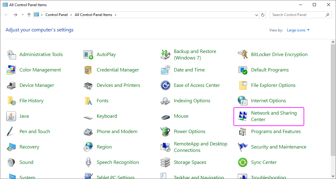 Vào Control Panel, chọn Network and Sharing Center