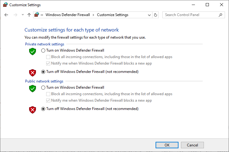Đối với Firewall, chúng tôi không sử dụng nên turn off