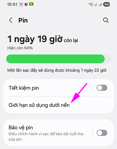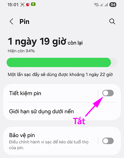 3. Bước 2: tắt tính năng Tiết kiệm pin