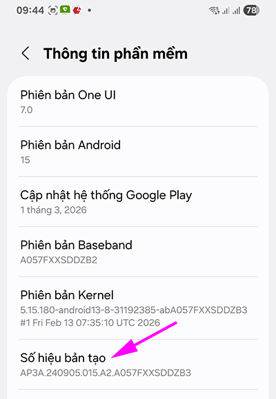 Vào menu Cài đặt ➡ Thông tin điện thoại ➡ Thông tin phần mềm