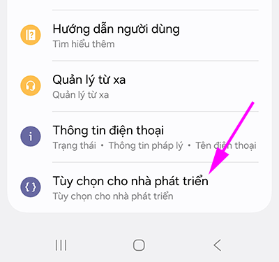 Sau đó, trong menu Cài đặt sẽ hiện lên Tùy chọn nhà phát triển.