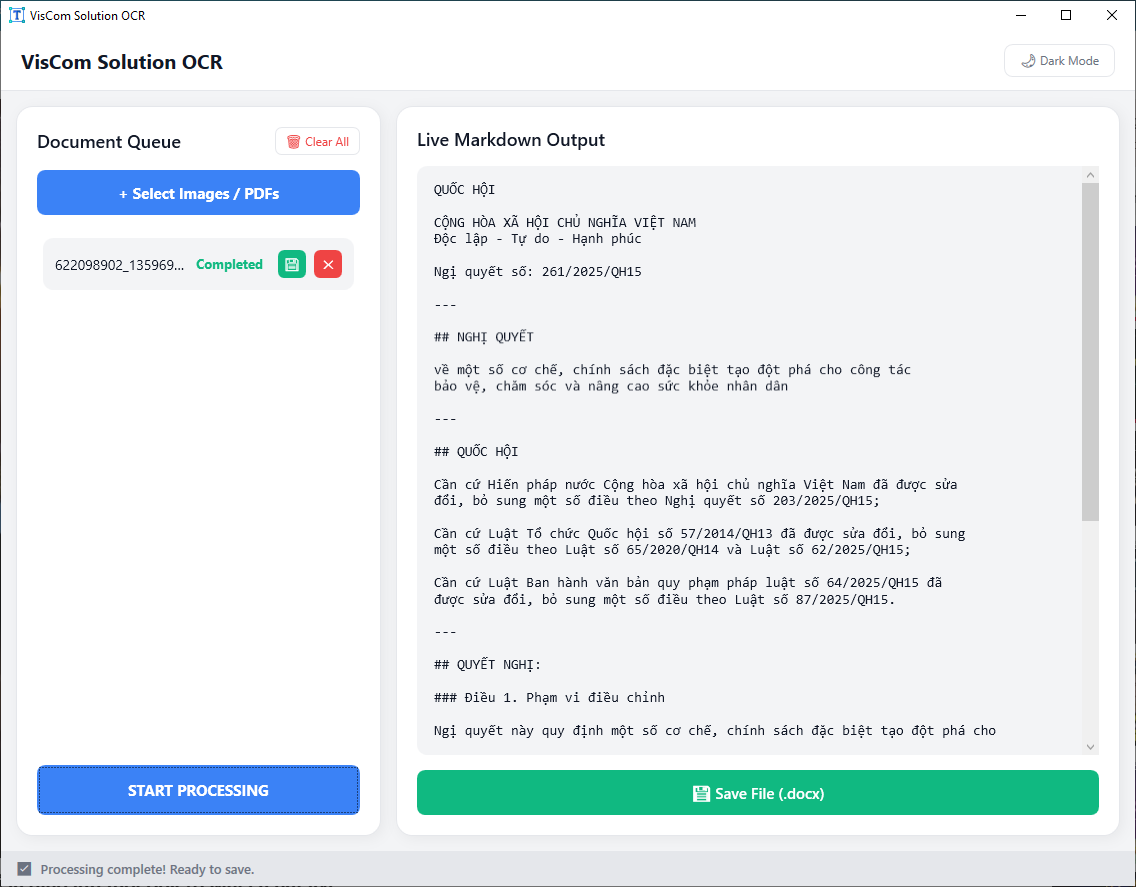 LightOn OCR là một ứng dụng nhận dạng ký tự quang học (OCR) hiện đại, sử dụng mô hình AI đa phương thức với quy mô lớn (~1 tỷ tham số). Khác với các công cụ OCR truyền thống, hệ thống không chỉ trích xuất văn bản mà còn hiểu cấu trúc tài liệu, trả về kết quả dưới dạng Markdown có định dạng, kèm theo tọa độ vùng chữ (bounding box).