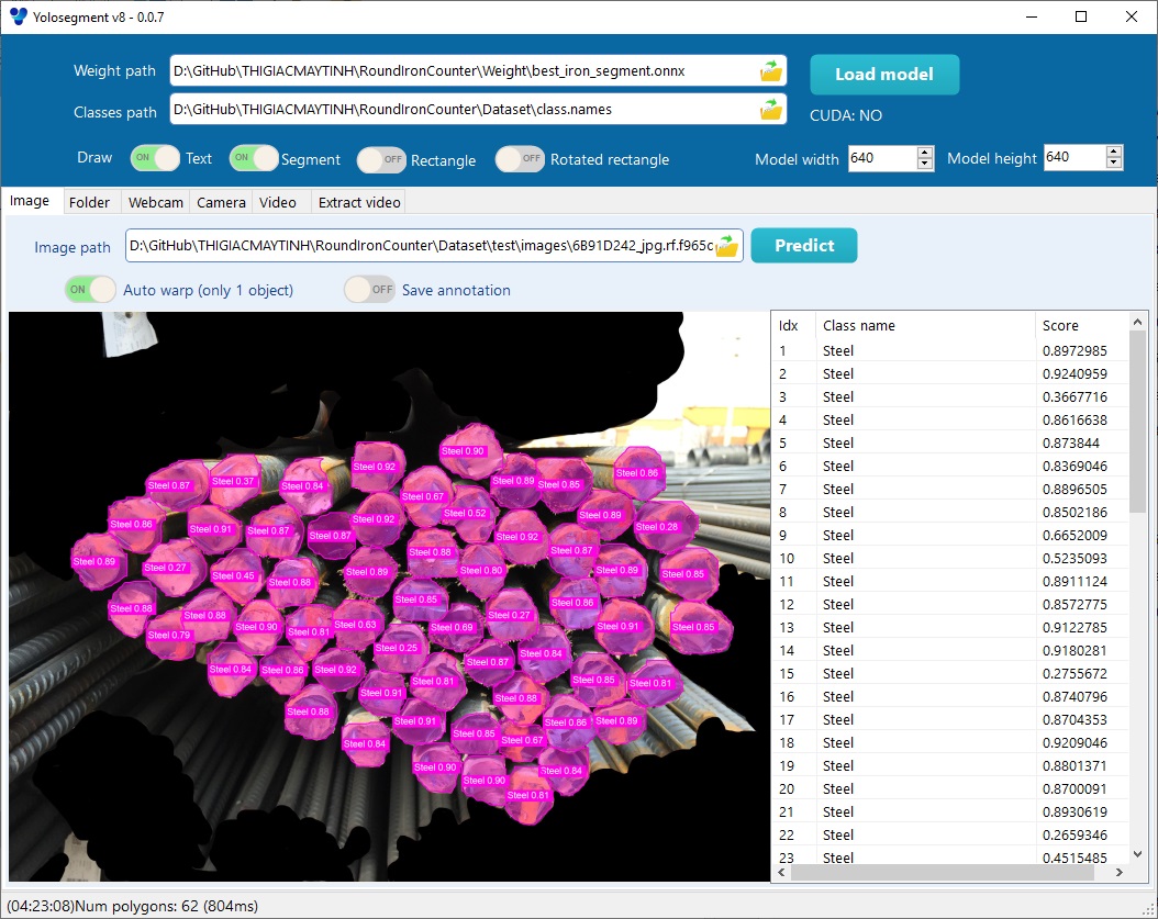 Download hoặc clone repository ở link cuối bài, sau đó chạy file YoloSegment.exe.